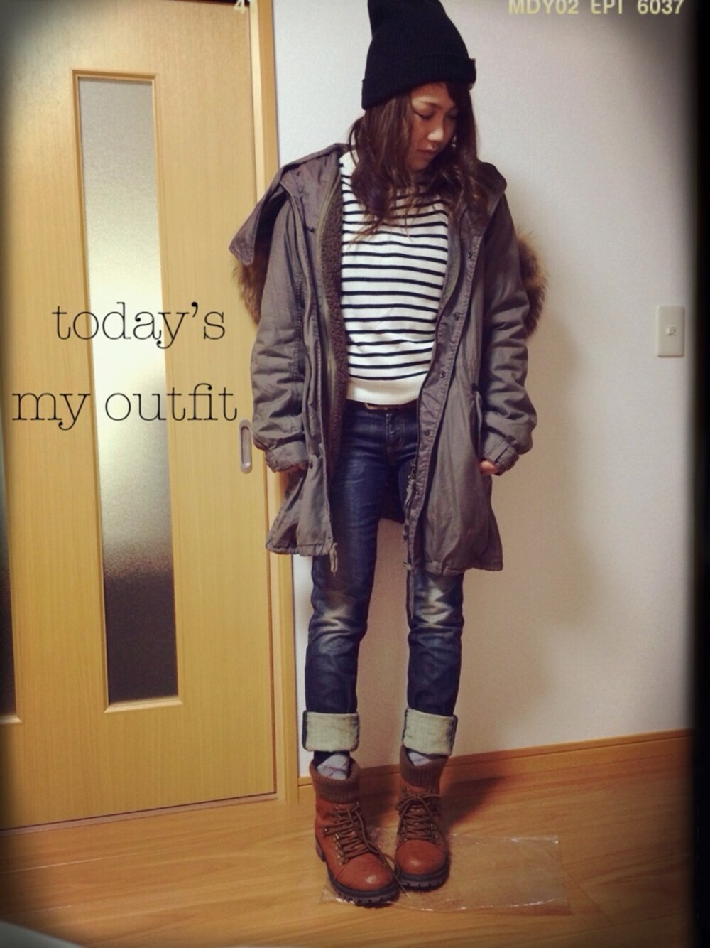 今日はスノボー! 下にプロテクターはいてるから かなりでぶ! 久々goaのモッズコートだした☻ 知らないおじさんにも 良いの着てるねってwww