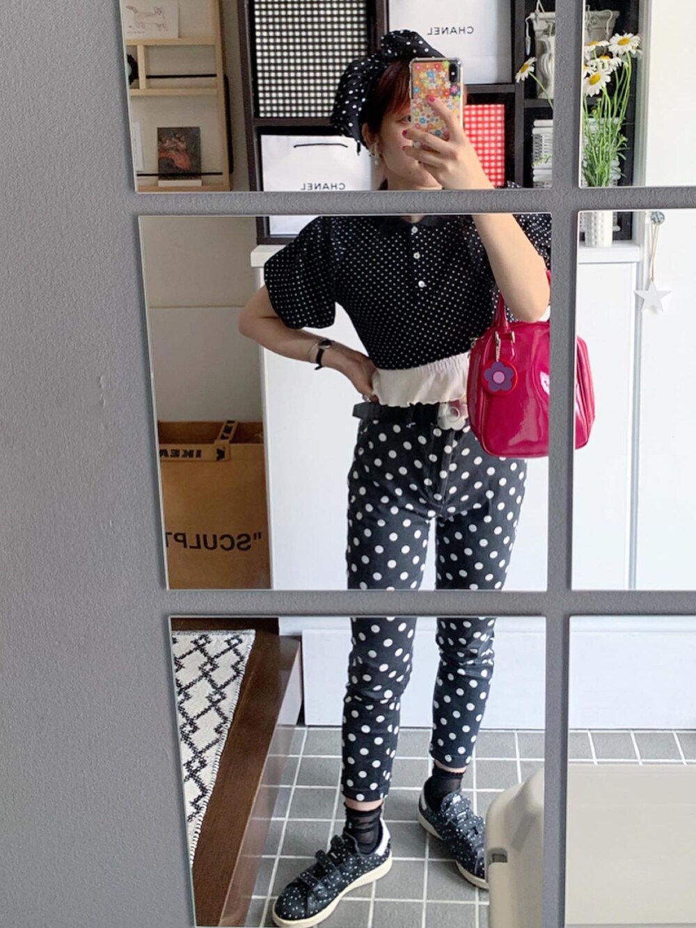 水玉さん リメイク服を着てみました〜 よかったらインスタ遊びに来てください〜 リメイクハンドメイドの紹介もしてます🌼🌼