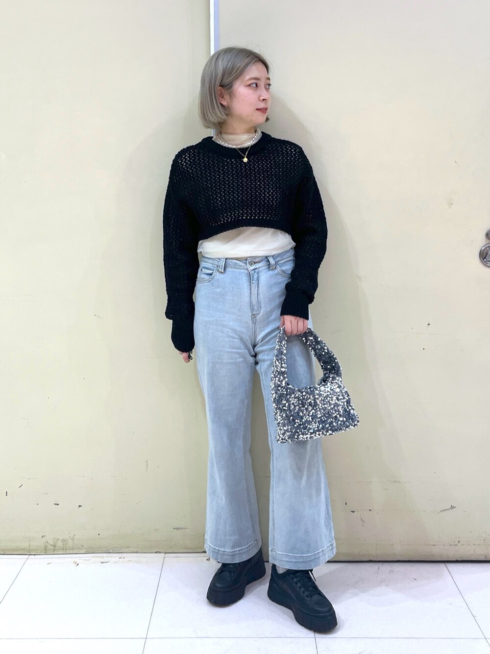 aaii18(FREE'S MART ルミネ立川)のニット/セーター「ショート丈メッシュニットプルオーバー」を使ったコーディネート