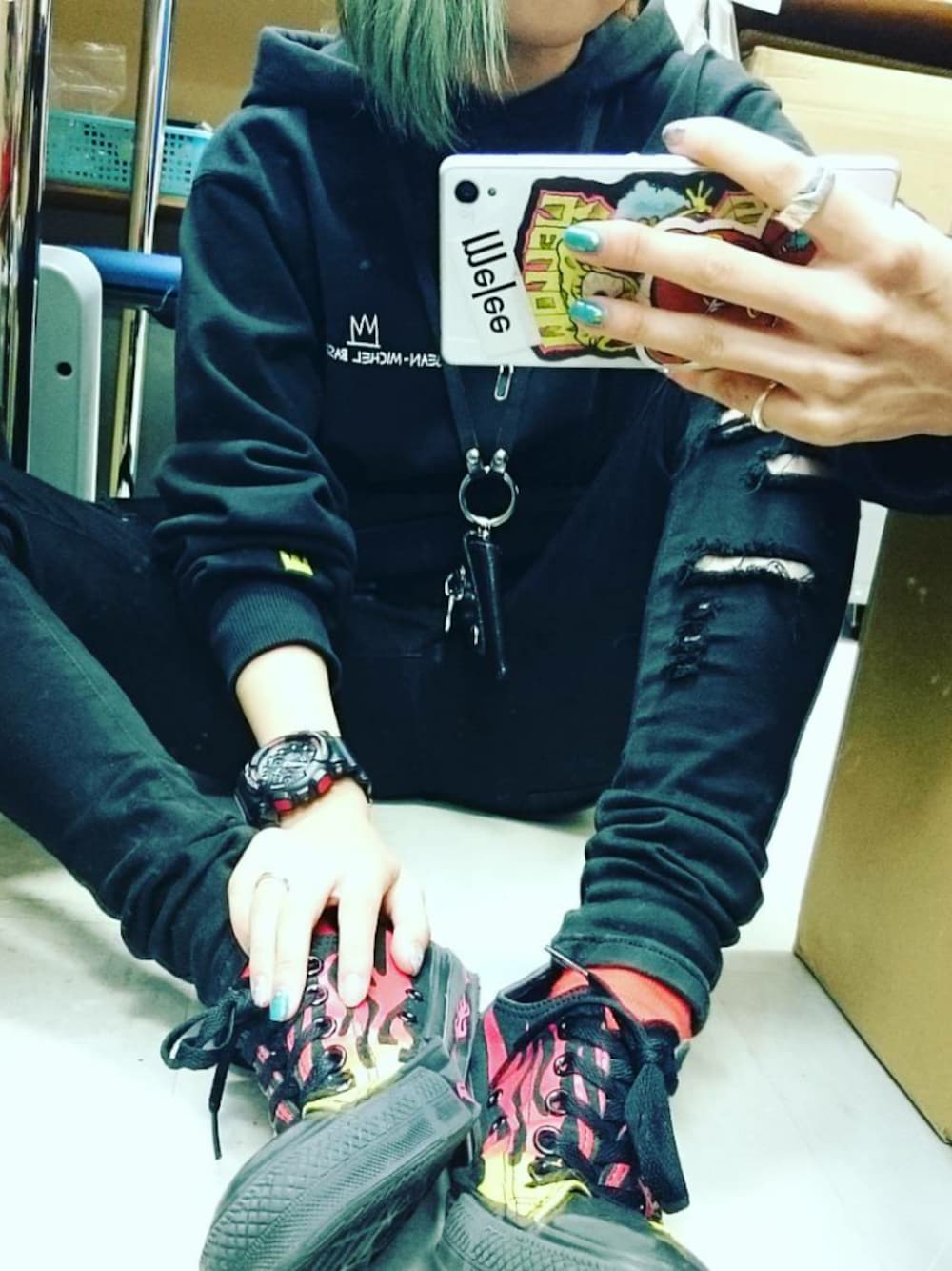 アミコ↯のスニーカー「converse コンバース ALL STAR IG(A) OX オールスター アイジー オックス 15SS ABC-MART限定 BLACK/BLACK」を使ったコーディネート
