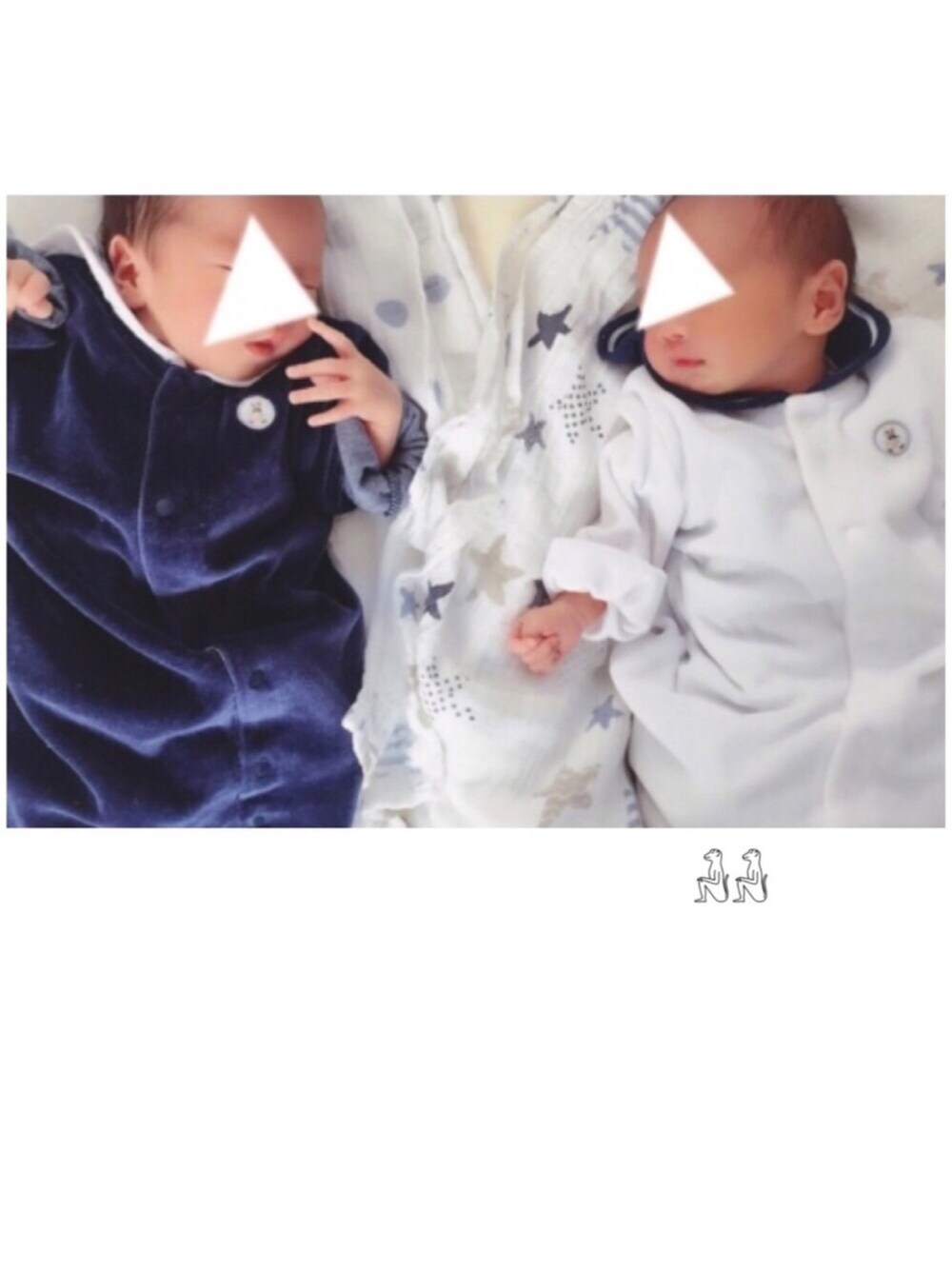 初投稿☺︎☺︎ 退院時の双子コーデ 助産師さんにも大好評だった セーラー襟つきベロア生地のコンビドレス* 激安なのに生地もしっかりしてて高見えでした♕ 👕コンビドレス 西松屋 ¥999 0歳0ヶ月 サイズ50-60