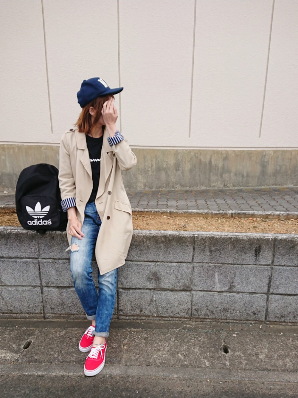 今日のコーデ載せよと思ったら #メンズライク で投稿しようってことで 過去ーデ🙇🏻♀️ 何年か前に買った Right-onのトレンチは てろ素材で袖折り返したら ストライプ♥︎(大好物のやーつ😍) Champion、adidas、VANS、と スポーツブランド多用ですみません😂😂(笑) 前までは毎日ってくらい キャップやらハットやら猫やら←え?(笑) 色々被ってたけど ここ最近はなーんかしっくりこなくて🙄 結婚して母になると 女は変わるって言うけど 頭の大きさまで変わったのかな。(笑) あ、ちなみに絶賛産後クライシスです😂😂