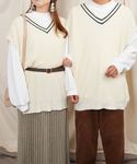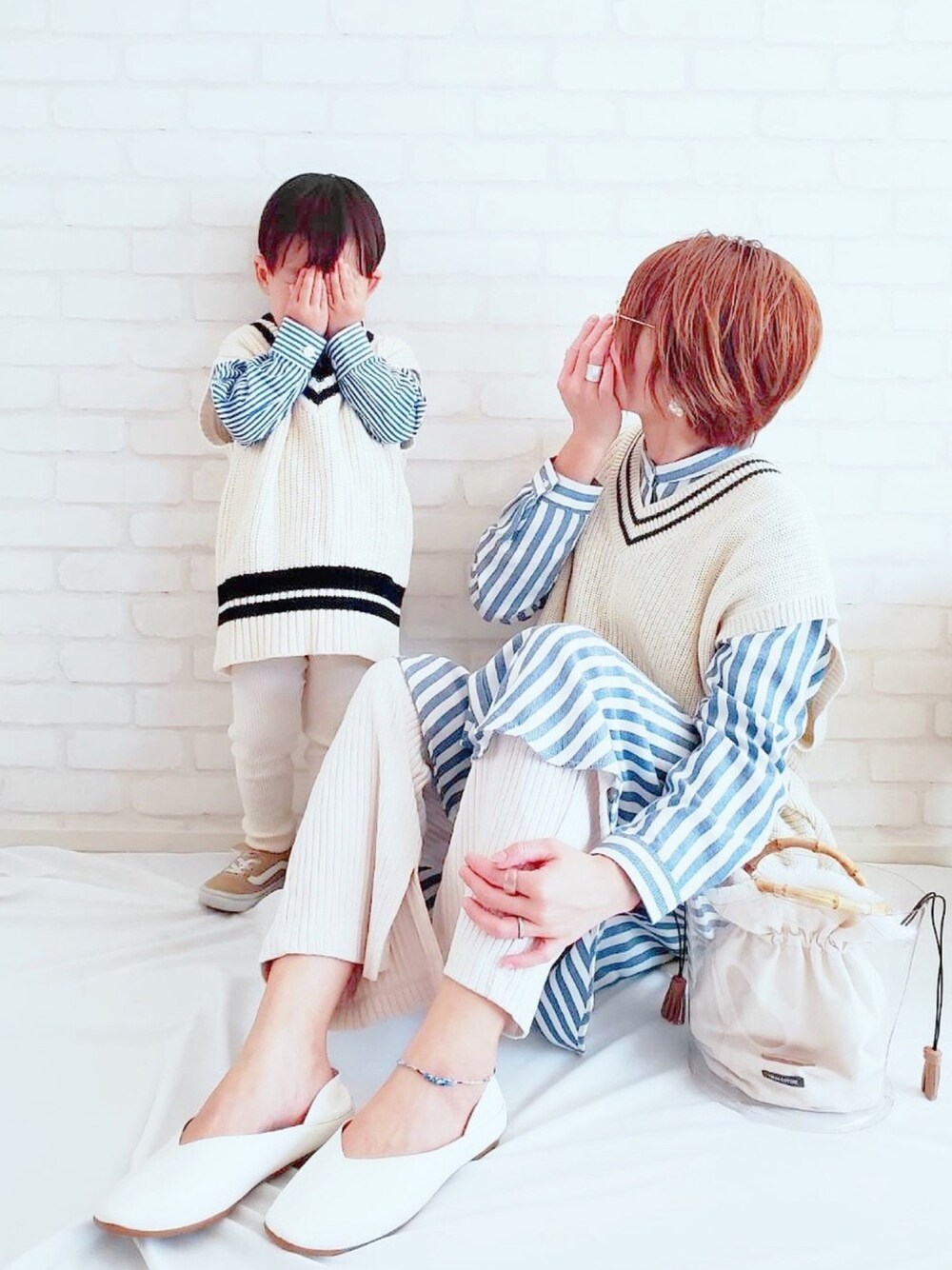 やりたかった ストライプワンピにチルデンニット。♡ リブパンツを合わせて リンクコーデ。🥳 ご覧いただき ありがとうございます✯