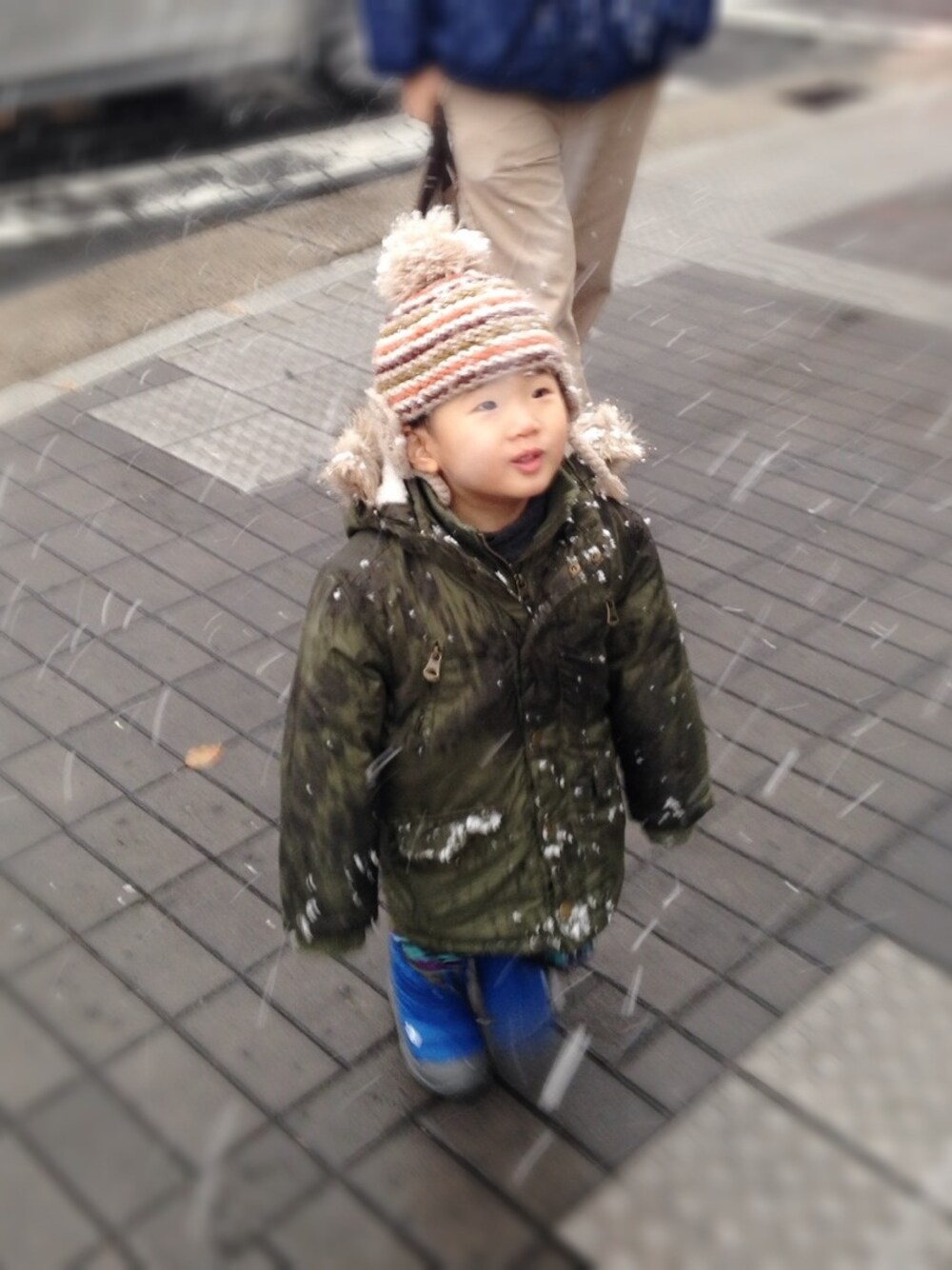 雪降る中のお買い物 サイズはおっきいけどジャケットもブーツもとーってもお気に入り♡