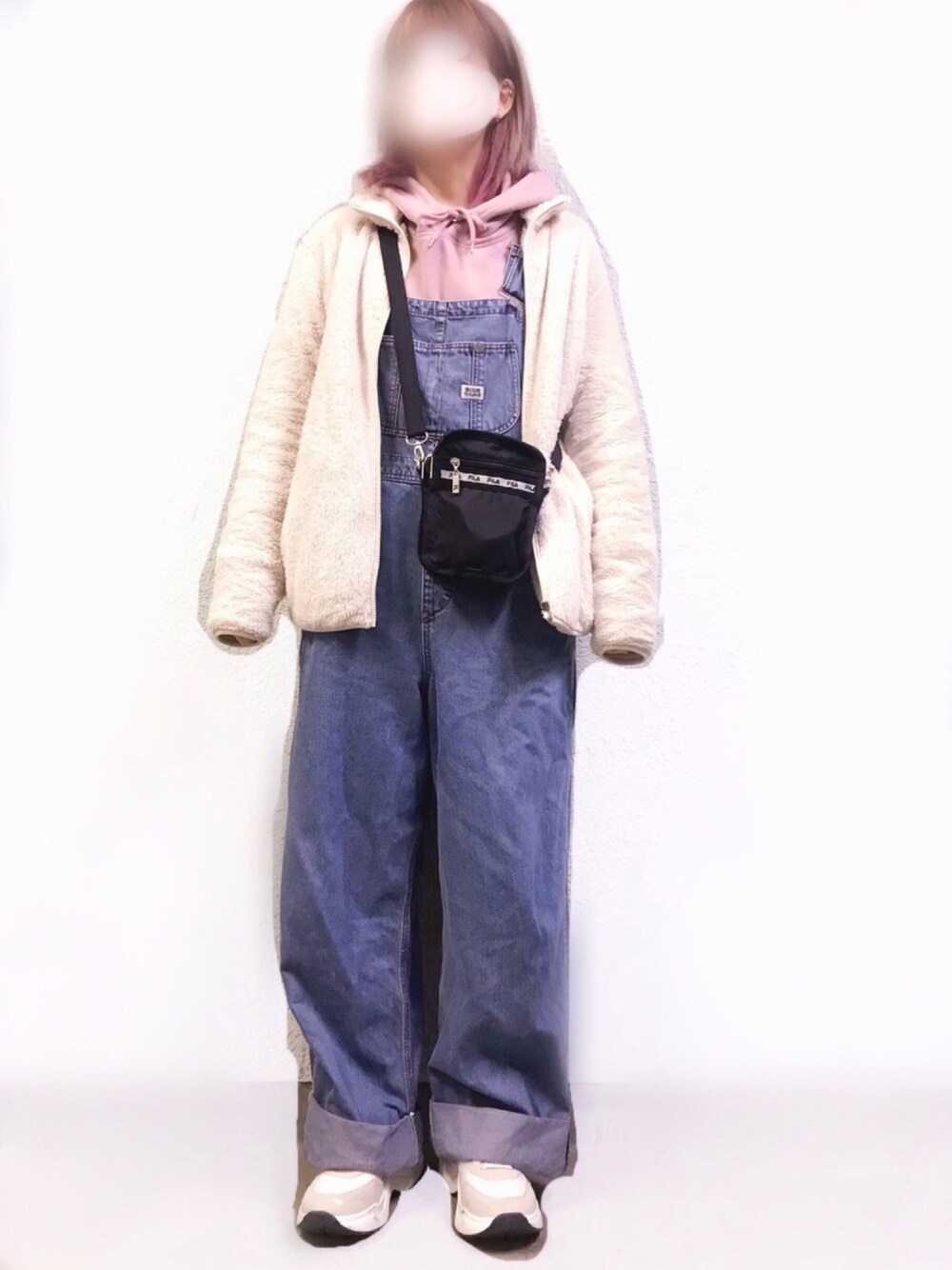 古着オーバーオールワンコイン ユニクロのフリース暖かい