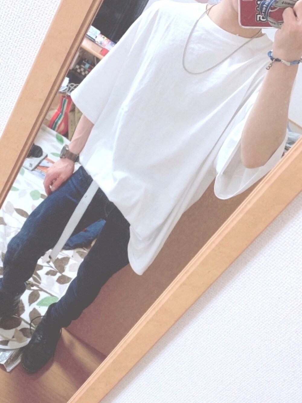 今日届いたTシャツカットソー💋 オーバーサイズでユニセックス! めっちゃオススメです! ぴたんさんの影響で買いました!! タックインがポイントだと思います!