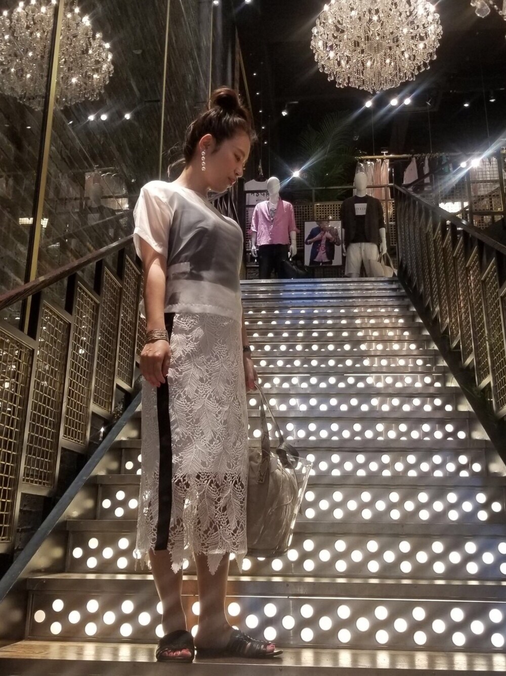 適度に立体感の出るハリ感に、マットな質感が加わった上質なシアー素材のブラウスとレースのスカートをあわせました!