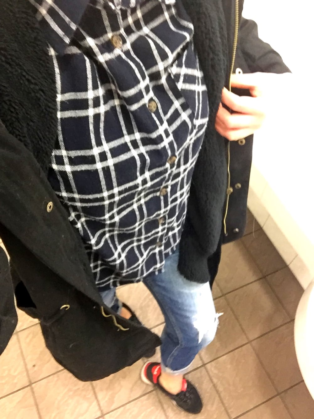 昨日買ったばかりのモッズコートさっそく⭐︎ 太ったはずなのにキツかったズボンが履けた!