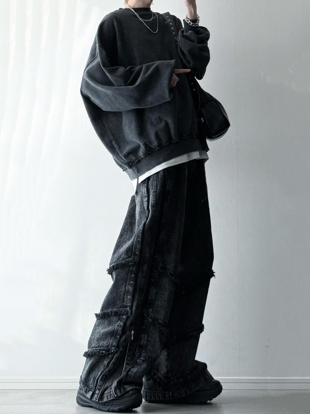 2/8 (土) 12:00〜リリースされる新作アイテム 綿100%/400gのヘビーウエイトの生地をふんだんに使った最強スウェット作りました ガチでシルエットが神すぎる ちなみにデニムは300着しか用意してないです