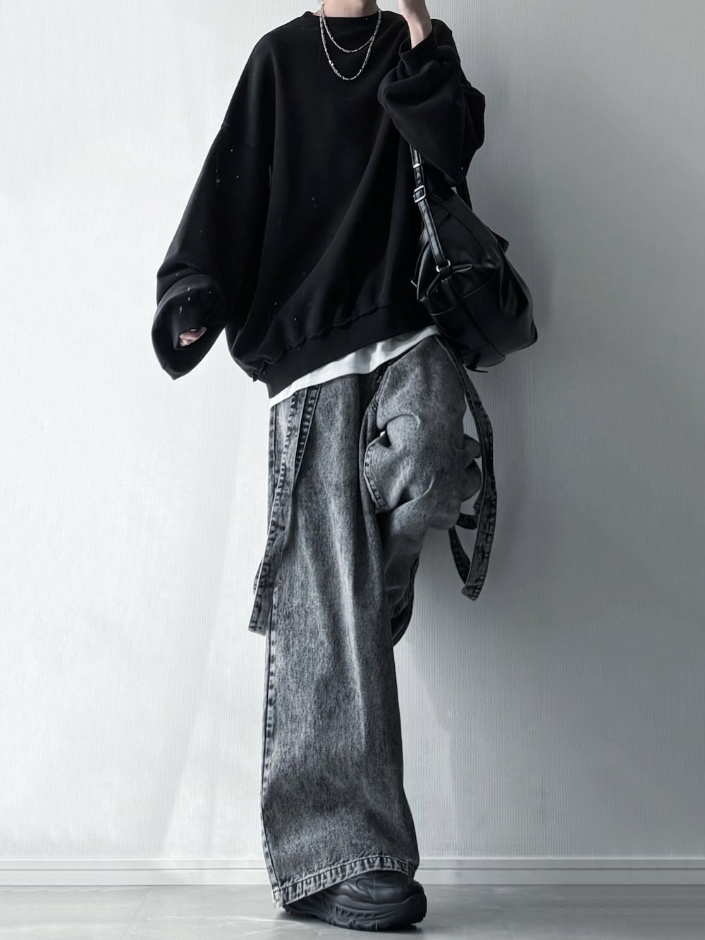 ユウのスウェット「【コットン400g】ヴィンテージ加工フリンジ ワイドアームスウェットプルオーバー」を使ったコーディネート