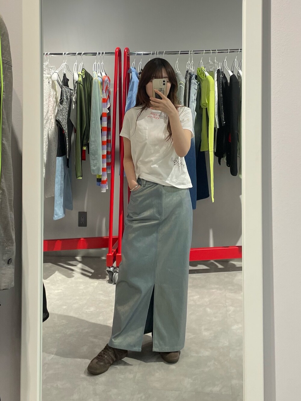 箔押しスカート!ゴールドがビンテージ感出してくれる🐏 Tシャツは古着👕