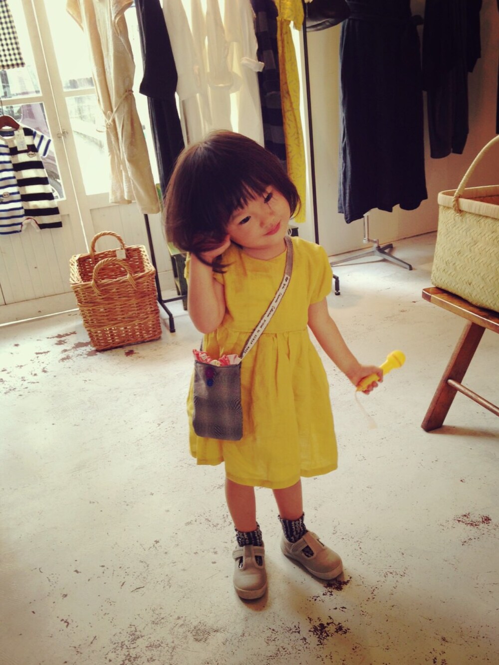 お気に入りのポシェット。おもちゃのマイクがお供♡