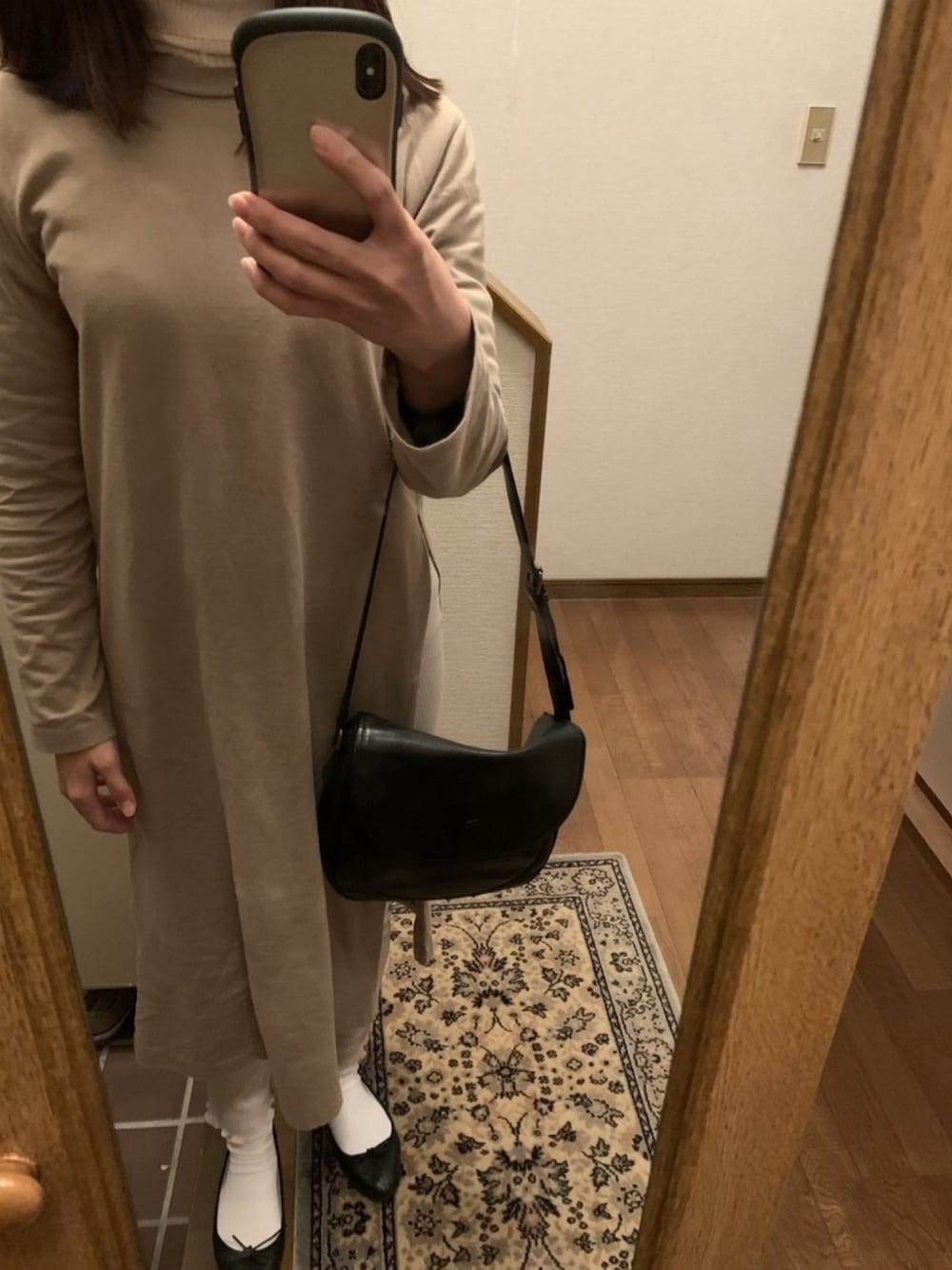 白×ベージュ 家に引きこもりコーデ。