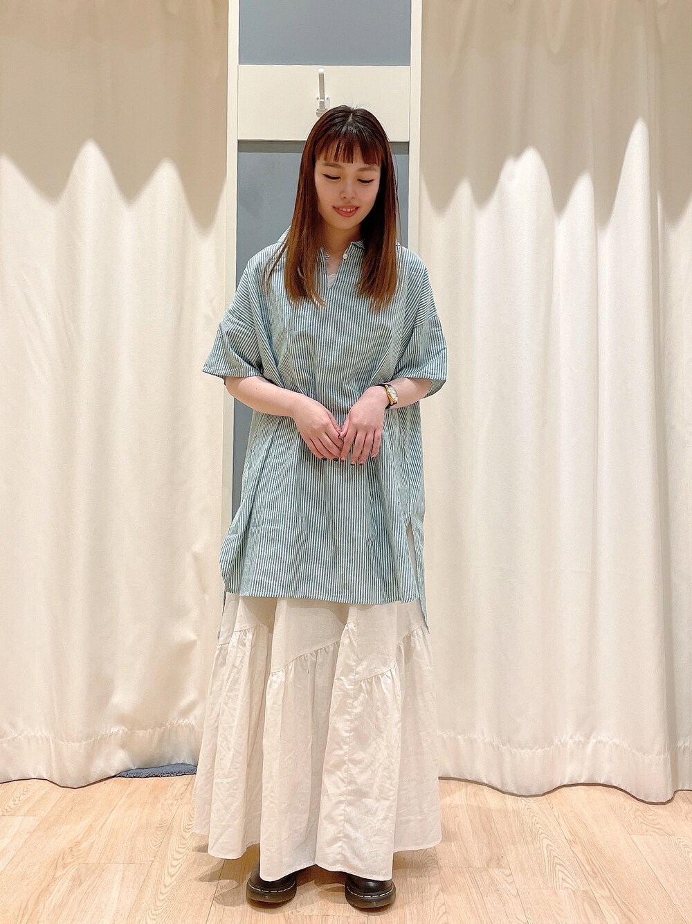 かわせのチュニック「【クールコットン/接触冷感】柄アソートスキッパーチュニック」を使ったコーディネート