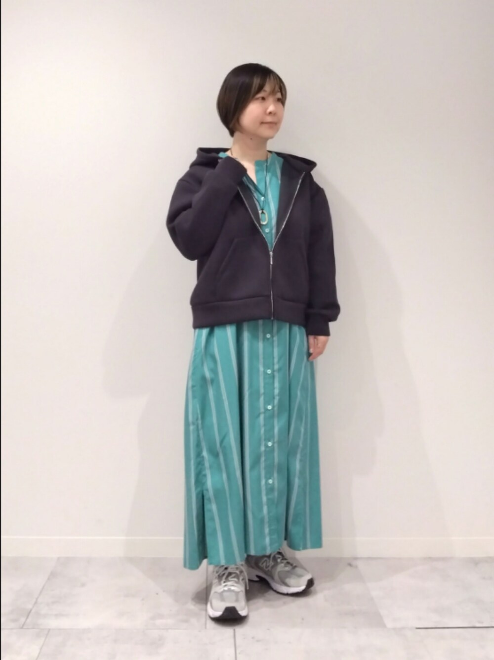 身長:149cm 普段トップスサイズ:M 普段ボトムスサイズ:S〜M パーソナルカラー:イエベ春 骨格タイプ:ストレート 【ダンボールジップパーカー】 サイズ感:ちょうどよい、ややショート丈で重心が上がってバランスがとりやすい 着用感:ふっくらとしたハリのある素材感が上品 【ストライプフレアシャツワンピース】 サイズ感:低身長の私はロングワンピースとしてちょっといい 着用感:ツヤが上品で、袖口ゴムで腕の上で止めればふんわり袖に