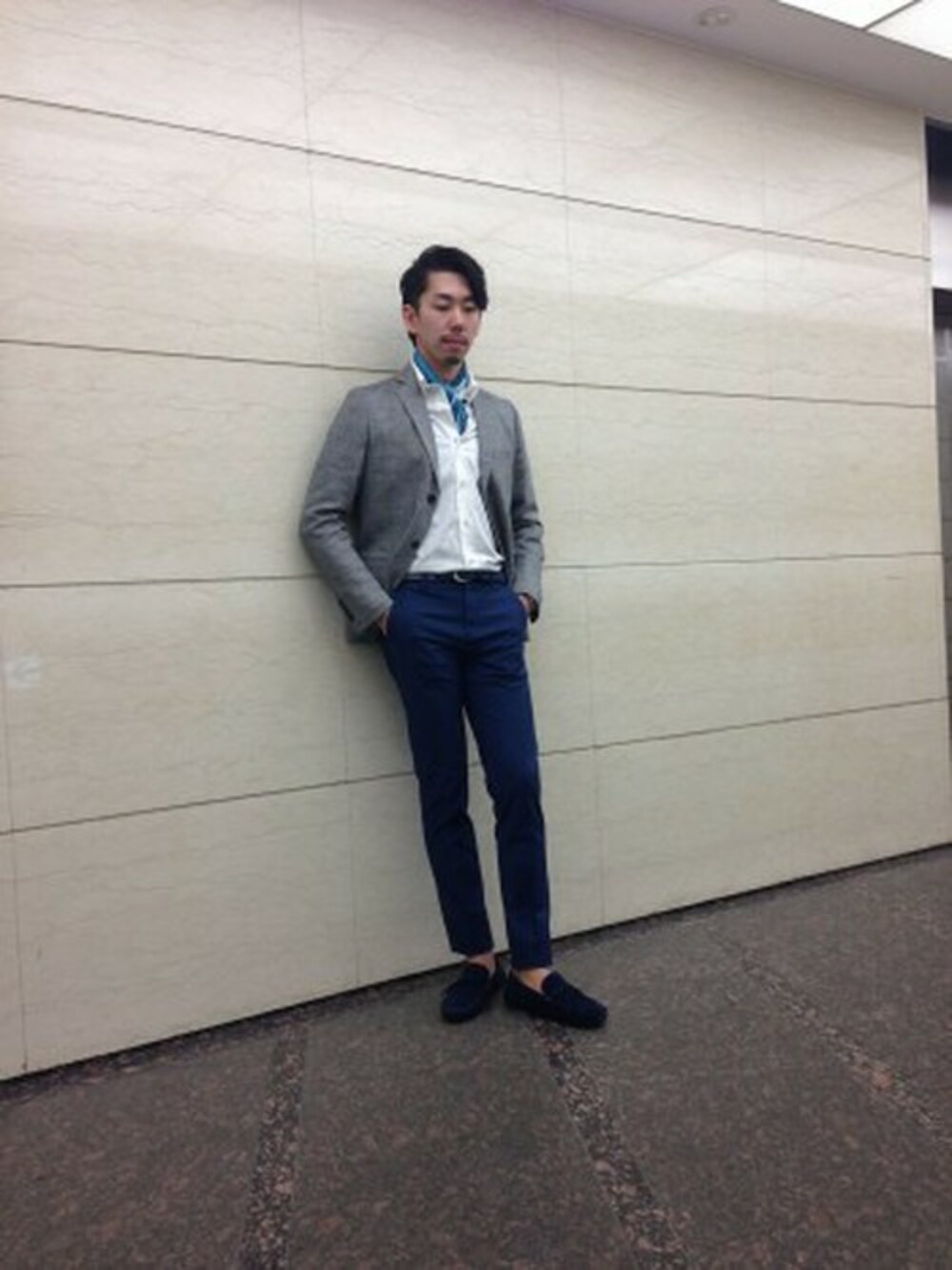 徐々に暖かくなり、ジャケットが着たくなる3~4月のスタイル提案です。 グレーのジャケットに映えるネイビーやブルーで下半身をまとめています。 足元はドライビングシューズで大人の楽ちんスタイル。 パンツの裾は短めにして肌見せorソックス見せ。 シャツの襟まわりも何かお洒落なアイテムが欲しいところです。ネックレス・ストール・ネクタイ何でもいいと思います★ ジャケット(リックテイラー):¥36,000+税 シャツ(RECENCY OF MINE):¥19,000+税 パンツ(ABAHOUSE):¥14,000+税 シューズ(ABAHOUSE):¥16,000+税