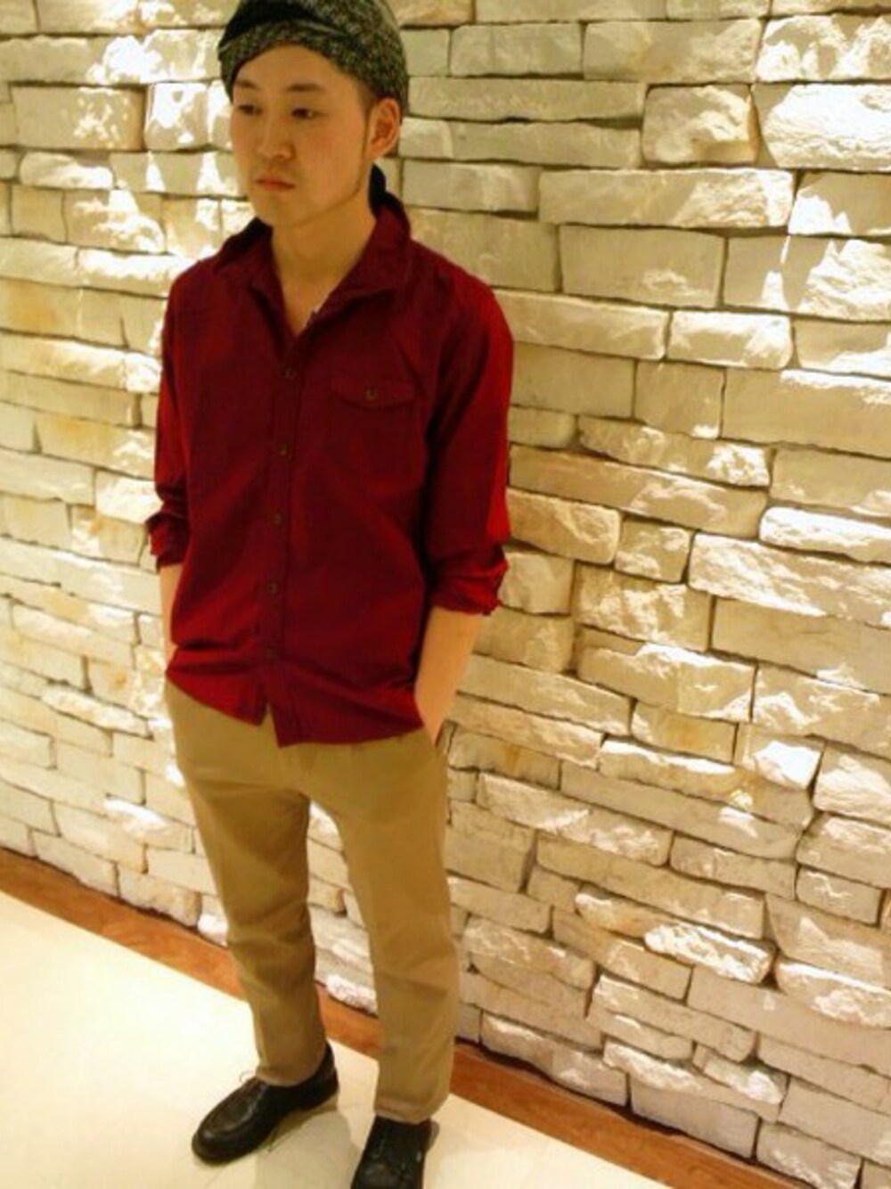 秋を意識した暖色コーデ。 シャツはスッキリとしたシルエットで、キレイ目にも男らしくも見せられます。あ 着まわしBATUGUNです!!