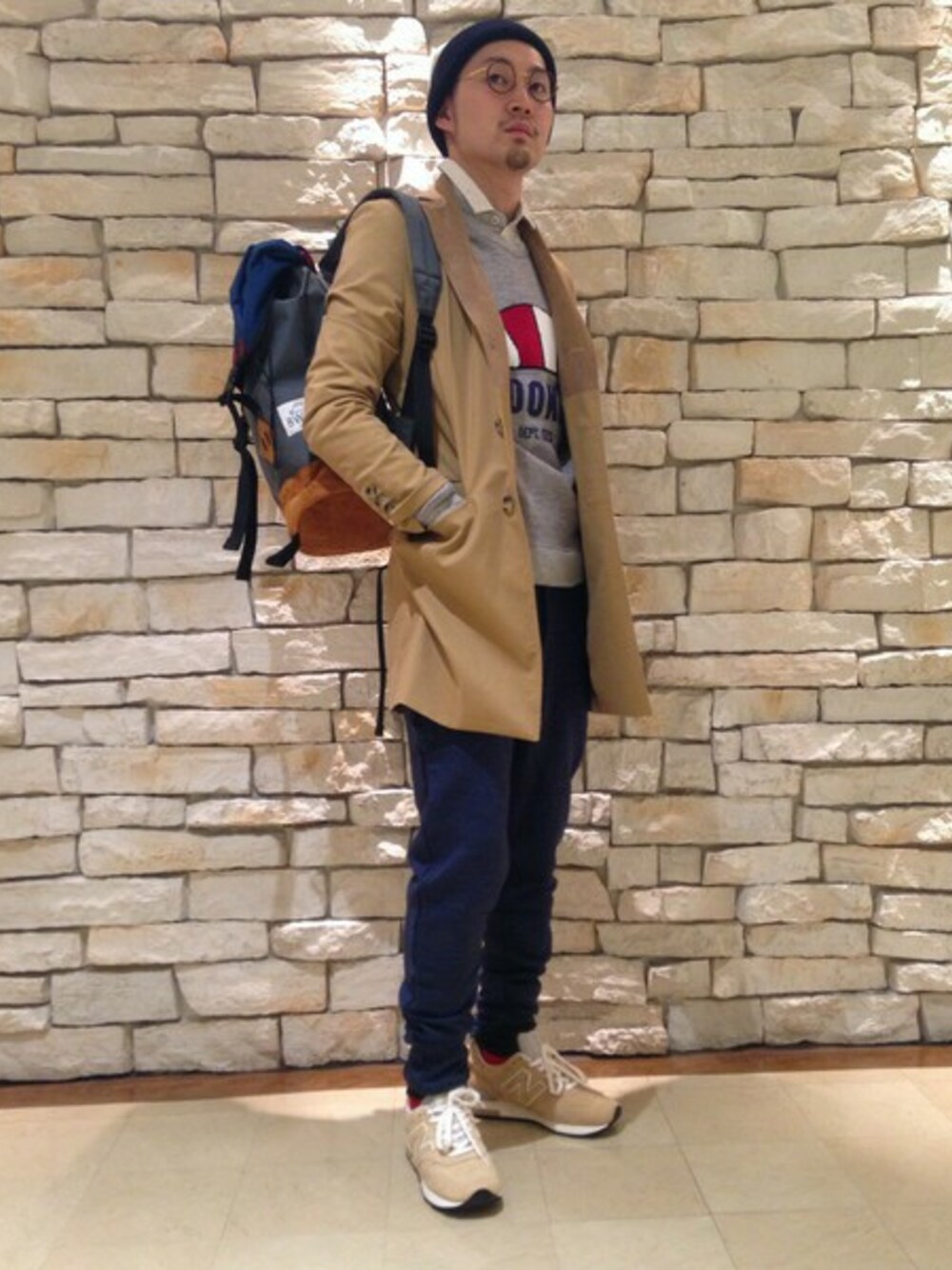脱力感のあるスウェット&スニーカーをチェスターコートで合わせることにより一気に都会的に。 トレンドもしっかり抑えております。
