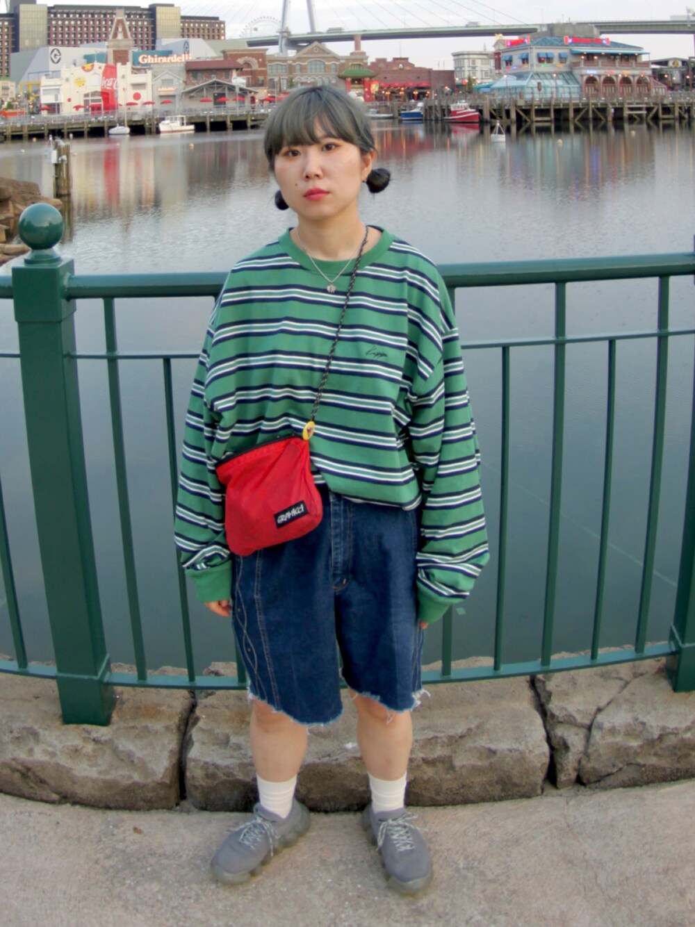 ばんどまん(おんな)のくろーぜっとのTシャツ/カットソー「Kappa / カッパ 別注 ロゴ刺繍 ビッグシルエット マルチボーダー長袖Tシャツ」を使ったコーディネート