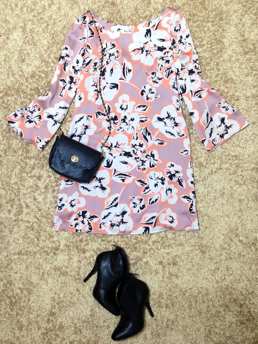 あいうのワンピース「サテン花柄プリントテントドレス」を使ったコーディネート