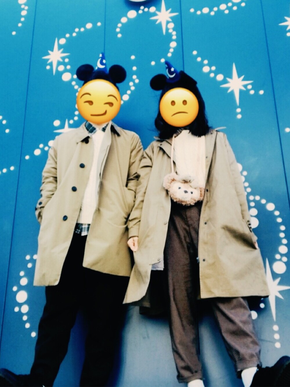 初投稿🎉🎉 彼女とシミラールックTDLしてきたんで 色んな人に見て欲しくて…☺️🤭 今回のポイントは何と言っても ベージュのステンカラーコートで合わせたコーデということで、古着っぽい格好をイメージしました😆 初投稿というだけあって若干見づらい部分もありますがどうか温かい目で見ていただければ…🙇
