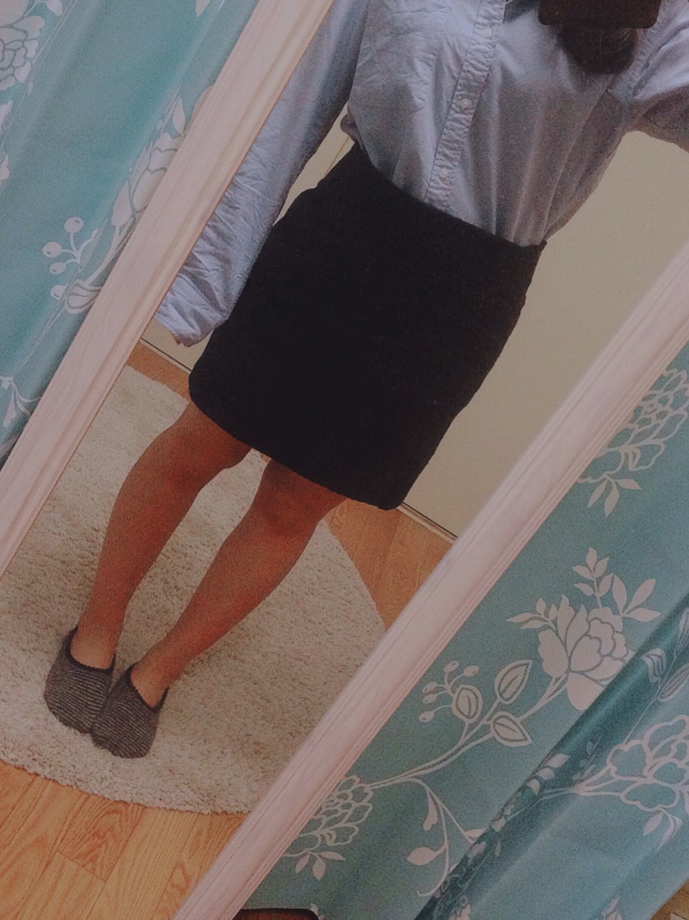 青のシャツはメンズ物👻 靴はラフに白のスニーカー合わせてました^ ^ シャツはインにしてもしなくても可愛いかな