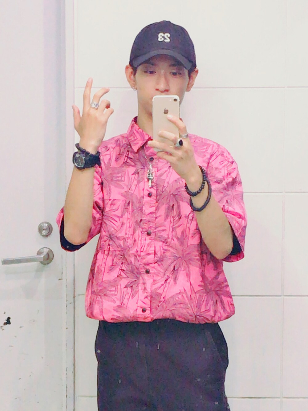 Bruno mars 石塚のキャップ「頭の形に合ったキャップは最高にかっこよく決まりますよ‼️お近くの帽子屋へgo💨」を使ったコーディネート
