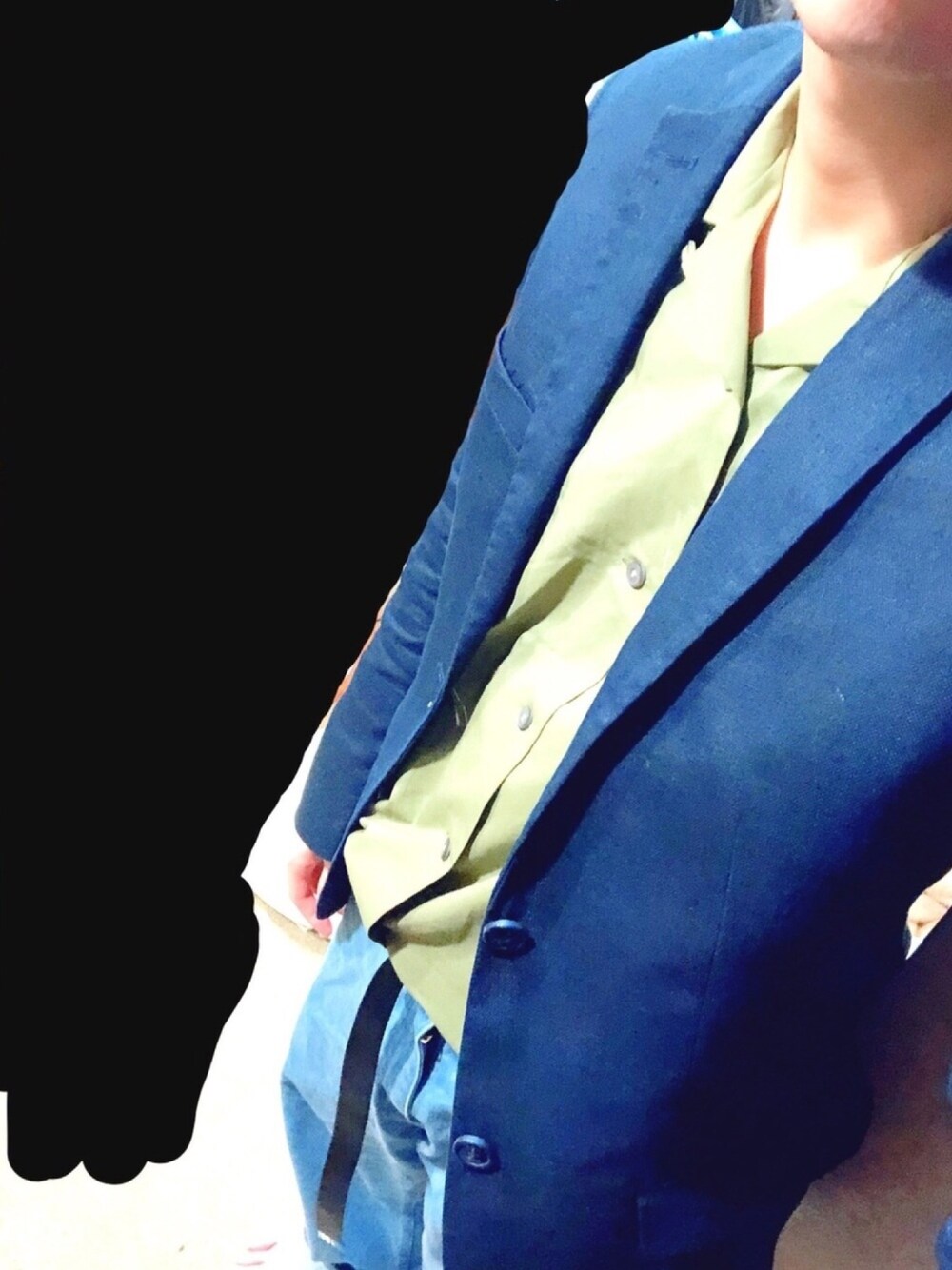 本日も暖かくていいお天気ですね😇 写真ですが、普通のコーデだとつまらないので下はワイドデニムで上はオープンカラーシャツでテーラドジャケットを着崩してみました。 シャツはタックインしています。