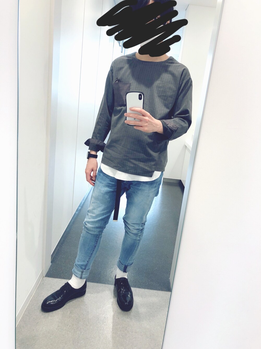 昨日のコーディネートです。 昼間は暖かったので薄着です😊