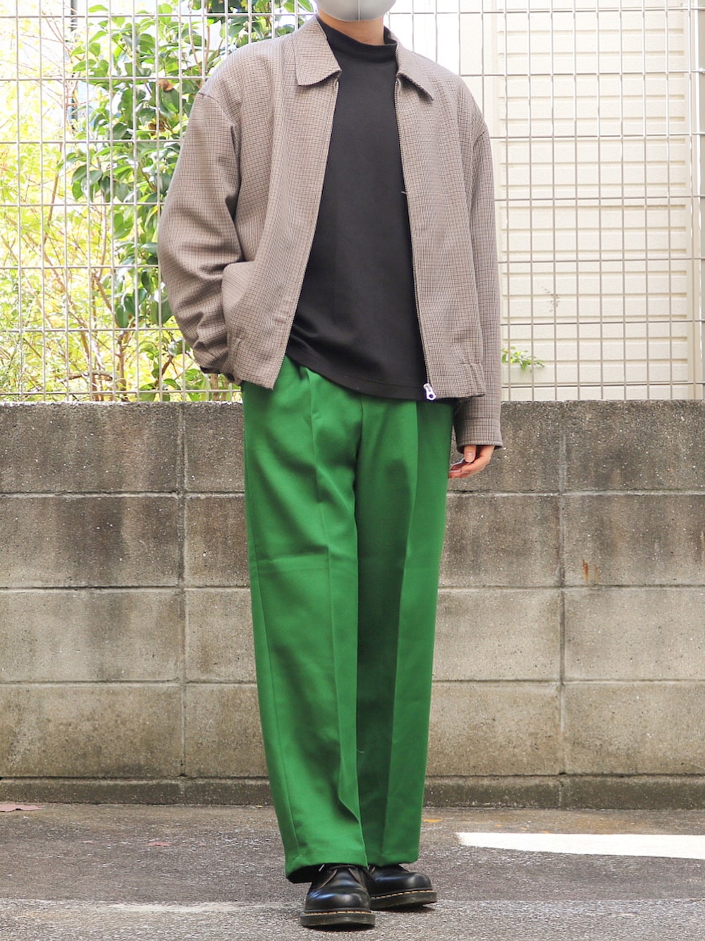 【カラーパンツ×チェック】 今日は緑のカラーパンツを使った綺麗めカジュアル! 緑は黒との相性がとにかく良いのでインナーには黒のモックネックを採用してます! ブルゾンのチェックでカジュアル要素を追加して、きめ細かいチェックなので綺麗めなコーデと相性抜群です🙆♂️ このカラーパンツは安くて良いシルエットなので超おすすめですー! ◎ピックアップアイテム Pants:ENDER PRODUCTS ストレートセンタープレス 1タックイージーワイドパンツ センタープレスの入った綺麗めなカラーパンツ。 発色が良くてほとんど毎日クーポンがブランドから出るので約5000円で購入できるコスパ最強パンツです。 ご依頼、ご相談はインスタにお願いします。 ID→_shige.y_