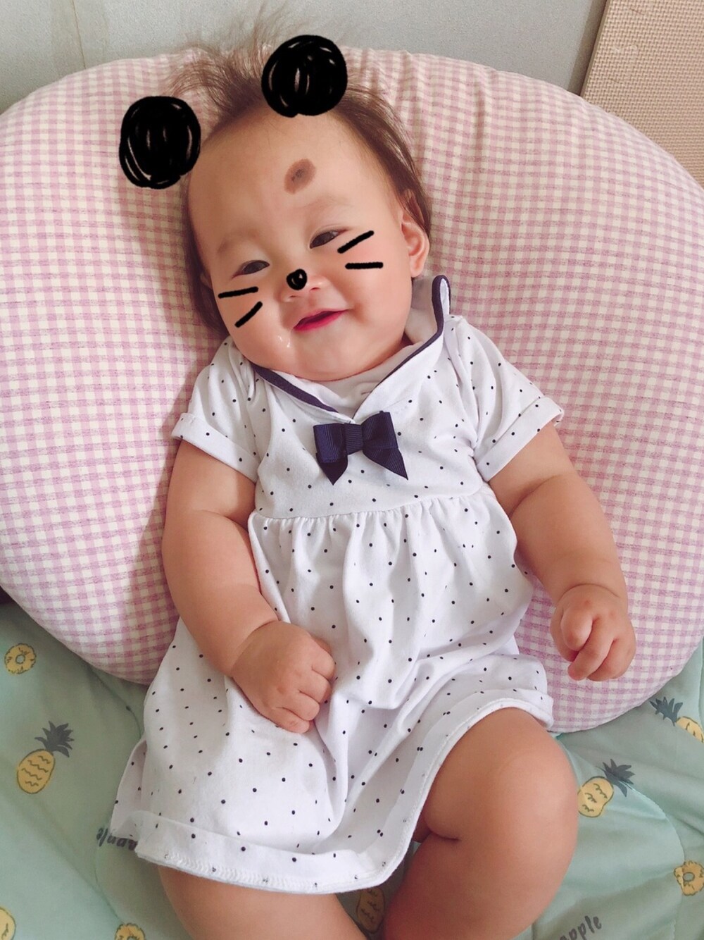 「今日も暑いでしゅね、ママ」 「どうりでよだれも出るわけでしゅね」 と語りかけてる顔◎
