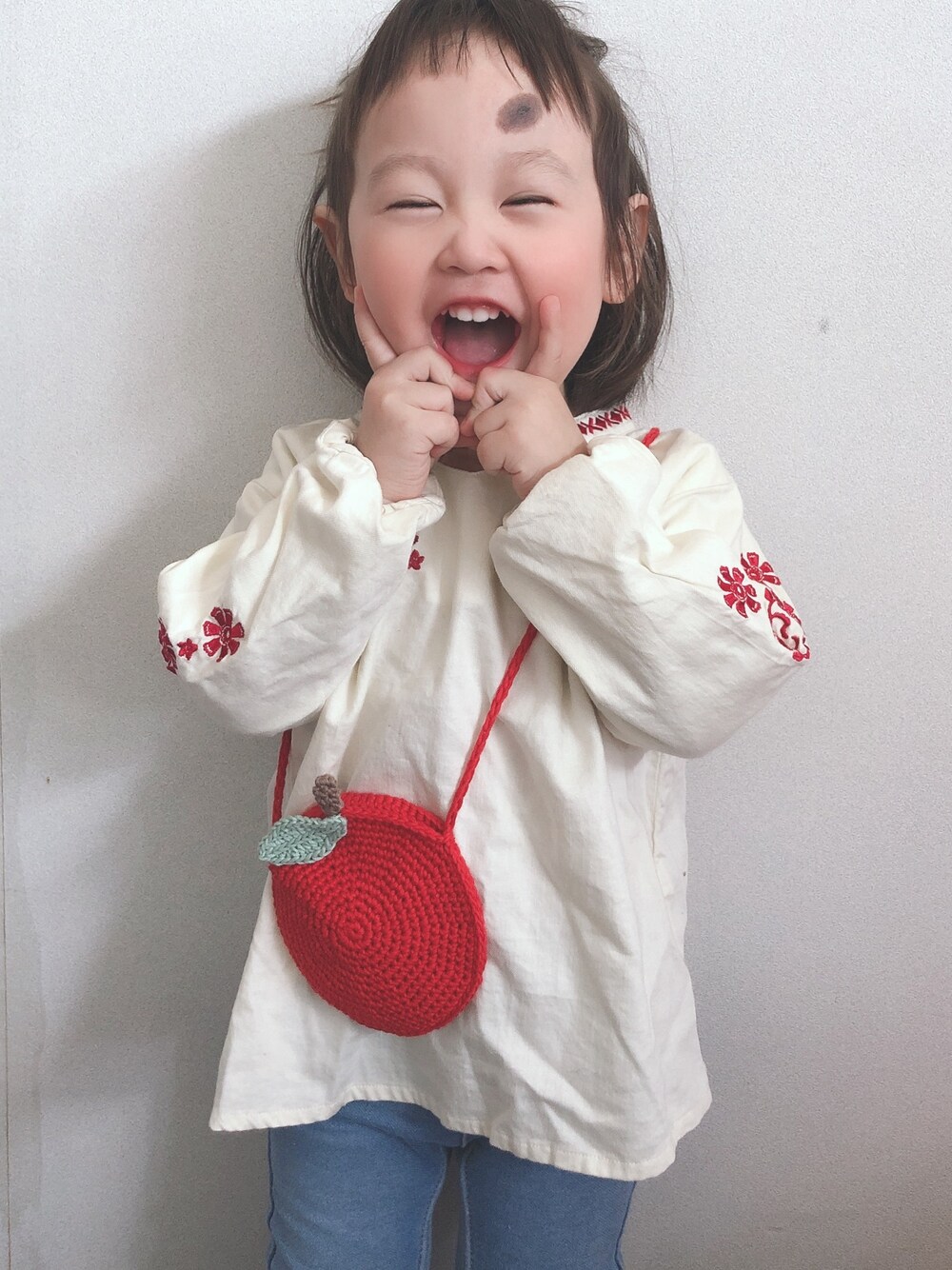 春到来っ🌸 お花見行くよ〜✿:* リンゴのポーチがお気に入り✨