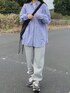 shokoのシャツ/ブラウス「【累計販売枚数10万枚突破!】先染めストライプ&ギンガムチェック&マルチストライプビッグシルエット長袖シャツ」を使ったコーディネート