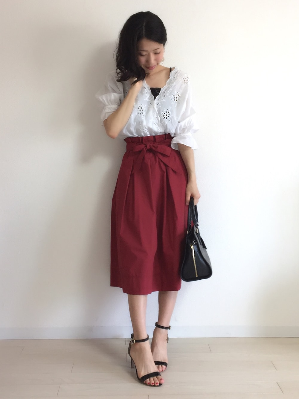 ご覧いただきありがとうございます😊💓 レースブラウス×赤スカート。 ヌーディサンダル履くだけでオトナ感出してくれるのでお気に入り♡ 今日はお友達とランチデート💓 オシャレな感じのところ行くので、 たまには女子同士でキラキラしたいので、 オトナ女子っぽく。 雰囲気だけ♡