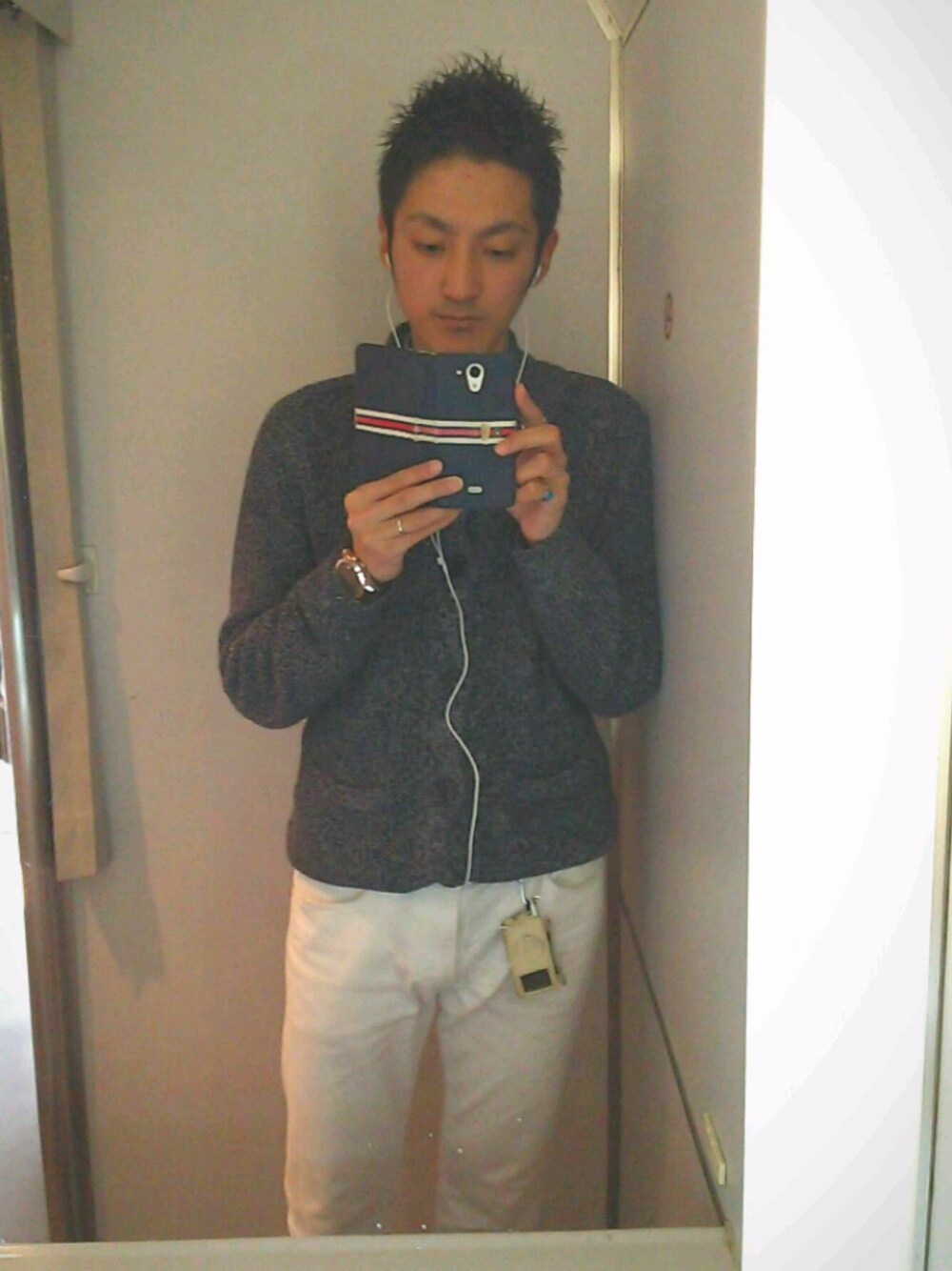 電車の中からおはようございます✨ 久々コーデ載せたくなりました🎵 最近足に霜焼けができてむず痒いです😱 冷え症男子です💦 えっ男子? 、、、おじさん? お兄さんってことにして(笑)