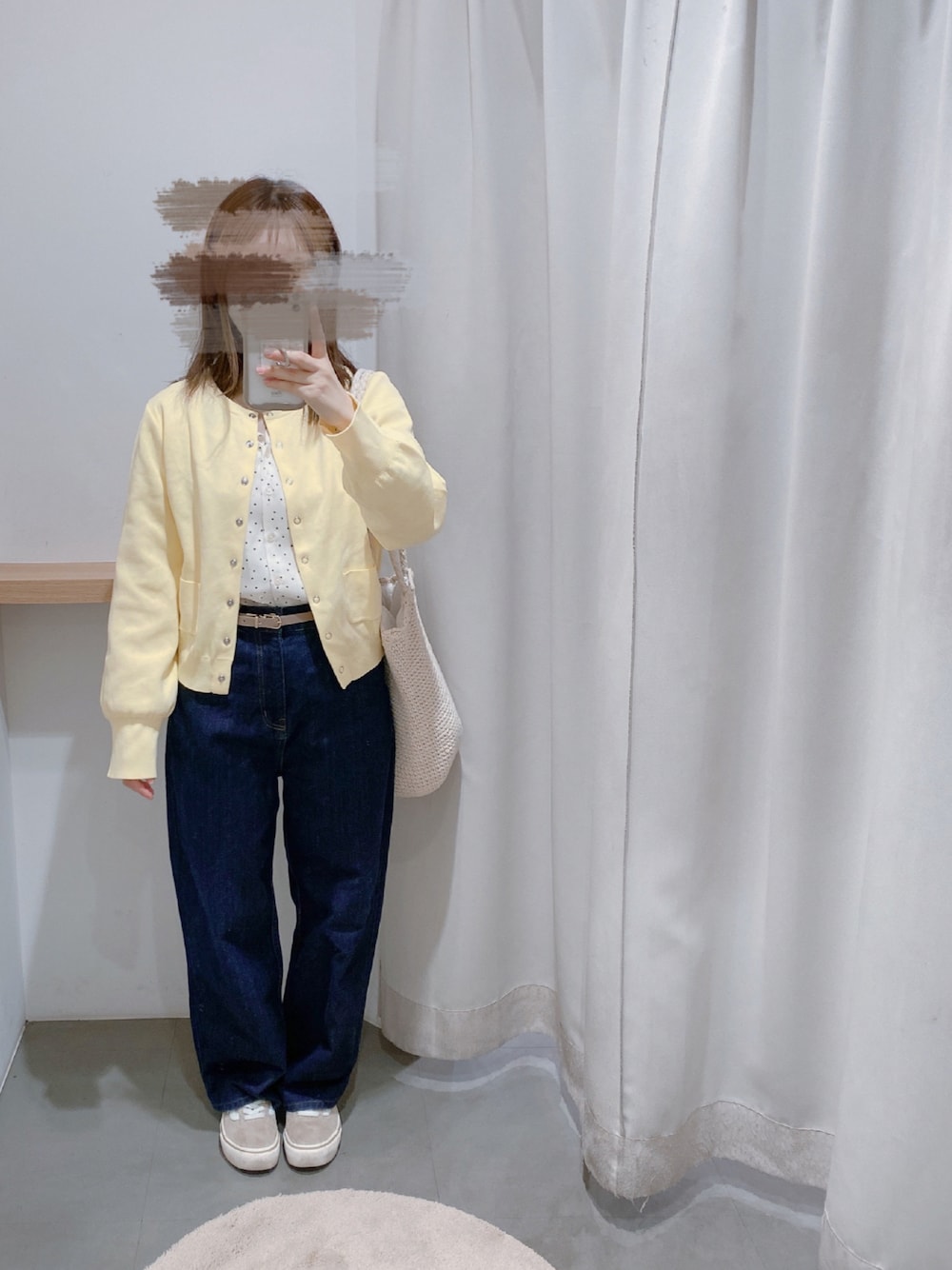 黄色のカーディガンやっぱり色味可愛い♡ Ray Cassinのワイドパンツは低身長でもちょうどいい丈だからお気に入り! あとGRLのトートバッグも⠉̮⃝