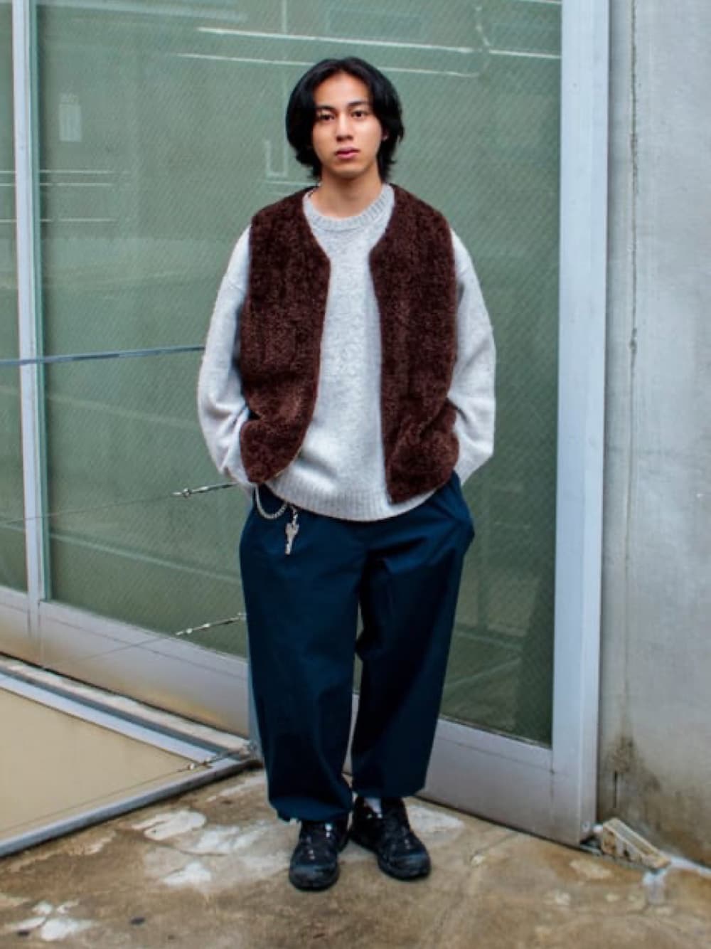 ベスト×ニットコーデ。 ニットはオーバーサイズで秋にぴったりの一枚! ベストはリバーシブルの為色々な着こなしに!