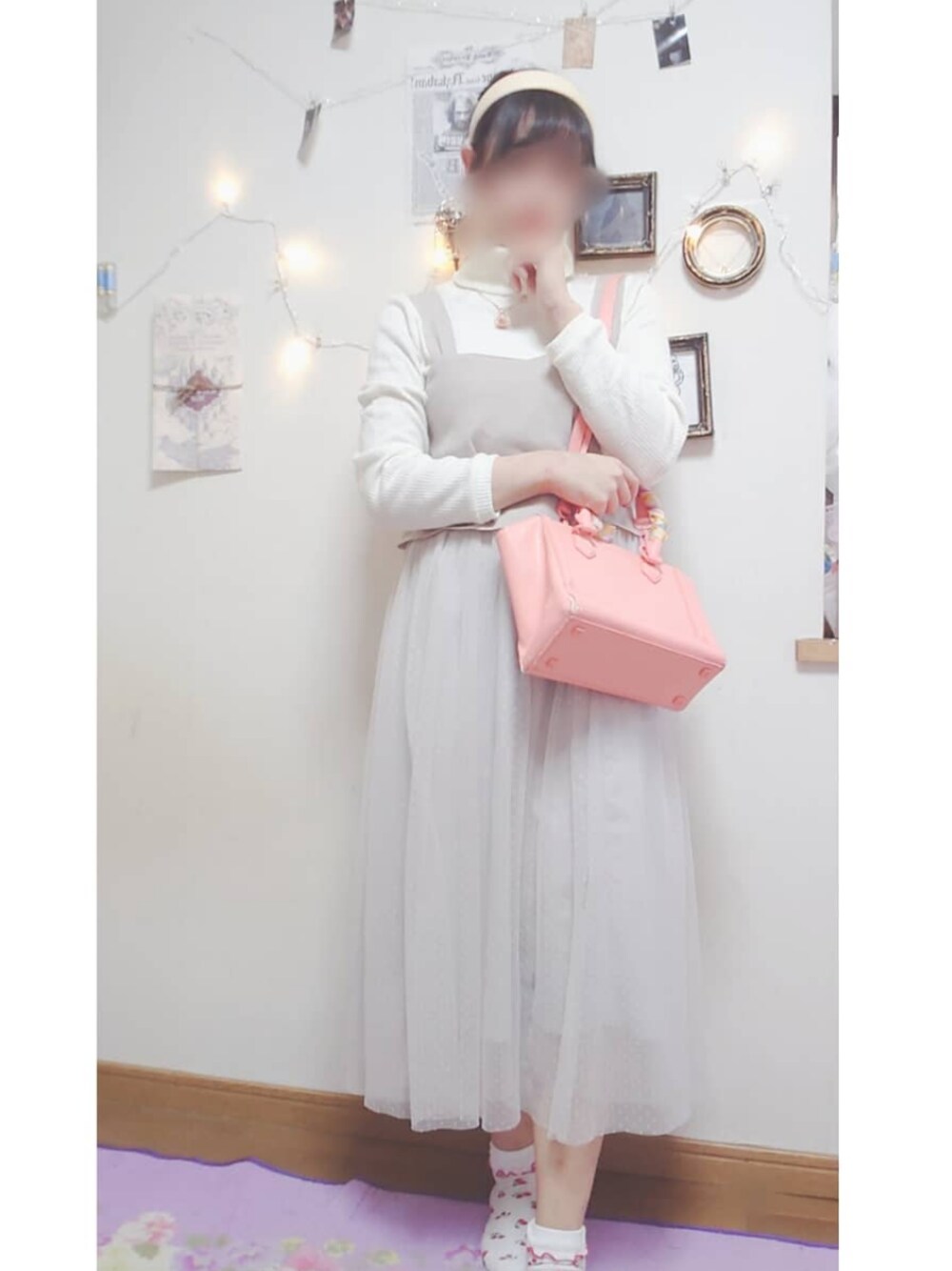 ドットのチュールスカートコーデ 安定の淡色コーデ💕 全体が薄いので、濃いピンクのバックを差し色にいれてみました! 靴下はくるぶしでも○ オフホワイトのデカカチューシャが最近お気 お団子と合わせると💮 arisu_1007でインスタやってます!よろしければフォローお願いします💕