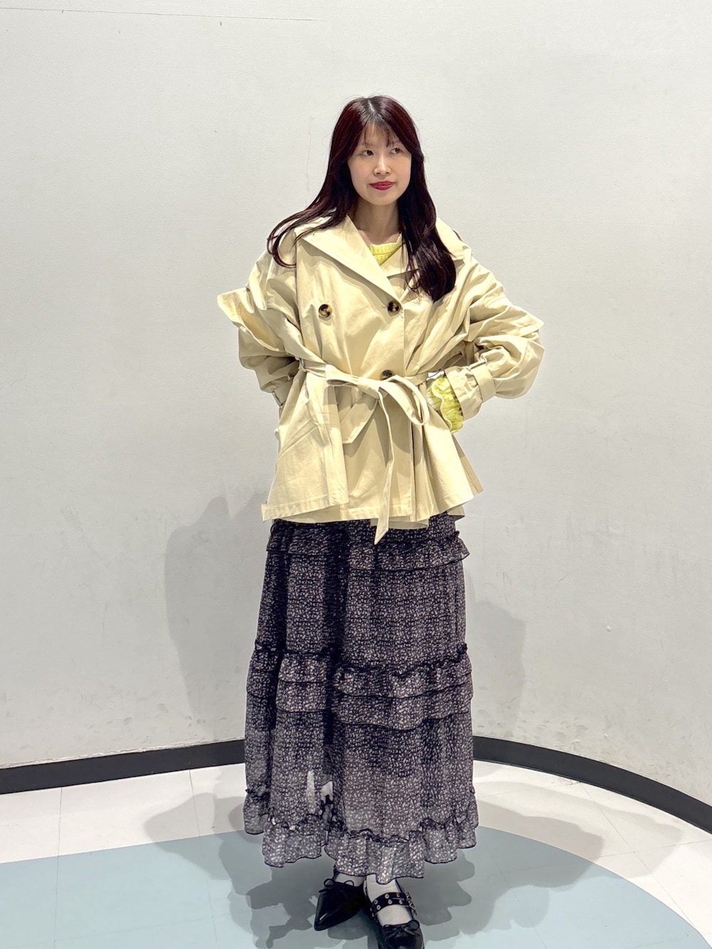 ご覧いただきありがとうございます♡ 身長▷▷ 164cm 靴▷▷ 24.5-25cm Instagram ▷▷ @wclo_natsu tiktok ▷▷ @wclo_natsu 【トレンチコート】 size free お袖にフリルをあしらったフレアデザインなトレンチコートは付属のリボンで雰囲気を自由自在に変えていただける春の羽織物です。 普通に着ていただくと、ケープのようなふわっとした形が可愛くて、ウエストにメリハリあるほうがお好きな方はウエストに巻いてあげて、後ろに括っても可愛いです! また、お首に巻いてあげるとエレガントな大人コーデになるのでリボンの付け方で雰囲気をガラッと変えてあげれます! 【ワンピース】 size free サラッとした生地で緩めなティアードデザインが可愛い春に着たい花柄ワンピは上からニット合わせでも、中に半袖Tシャツと合わせても可愛い着回し重宝しやすいです 【ニット】 size free フリルとメロウのMIXされたデザインがかわいい!胸元の大きなフリルで着膨れしやすいニットでもスッキリ魅せが叶います! 透かしニットなのでキャミ合わせで合わせてもかわいいですし、シアーやシャツなどレイヤードしても可愛いです!