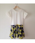 ふんわりしたパフスリーブが可愛いワンピース。 ホワイトと花柄がいい感じ。
