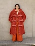 ⠀ basemark23AW フリンジコートをメインに オレンジのワントーンでスタイリング🍊 こちらのコートはウールのカットジャガードが前身頃に配置され後身頃はソリッドな素材で合わせられたアイテム🙌🏻 袖と身頃の縫い代を表出しにする事でボリューム感のあるフォルムと前身頃のフリンジが存在感あり、間違いなく秋冬の主役級となるコートです🫡 インナーのテーラードジャケットは、 先日投稿で着用していた黒の色違いで こちらもセットアップでパンツもあります◎ 久遠で9日までの受注販売となっていて、 久遠の店頭でも受注会やってます💁🏻♂️ seytoのフリンジショルダーバッグは、 昨日からから再販開始されたのでご購入できなかった方は是非ご検討下さい😌