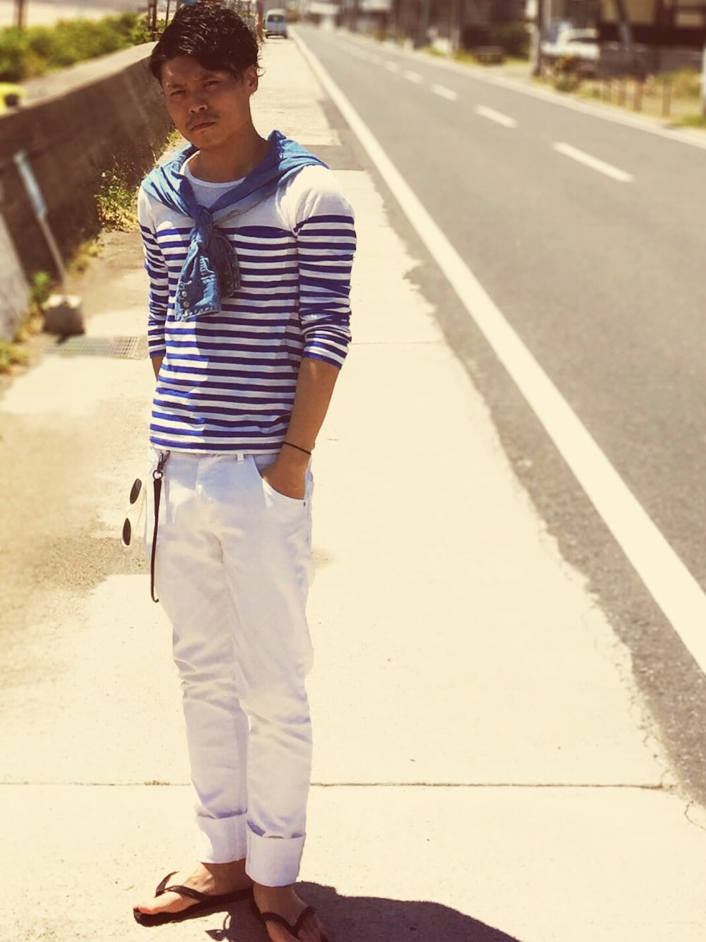 台風一過?台風一家?どっち?笑 流石に波は高いけど、ローカルの海はいい香りの潮風が吹いてます。落ち着くわー。 #セルフカメラ恥ずい #散歩してる人達ガンミ #泳ぎたいぐらいの気温 #台風来るは地震起きるはで地球のピンチ #なのに呑気にこんな写真撮ってる俺 #平和