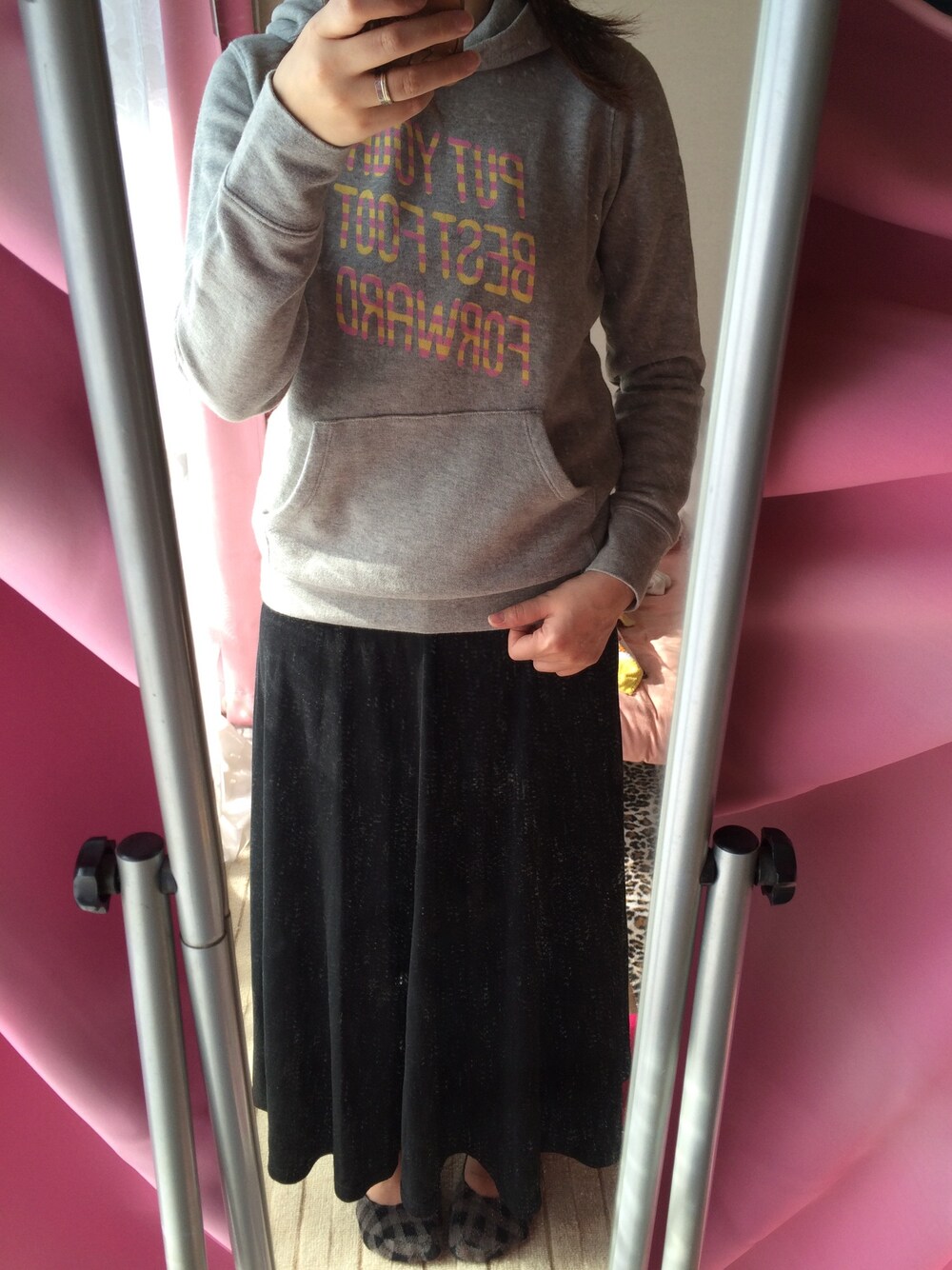 今日は久々にマキシスカートを履きました〜😄 天気も良くて先ほど掃除やら布団干しやらを終わらせたところです😋 クロのマキシにパーカー…部屋着スタイルになってしまいましたが、外出する用がない今日の私には楽チンで動きやすいスタイルです😊 パーカーもマキシスカートも以前載せたものです🌟 あまり流行りや可愛い服を持っていないので、着まわししながら何とか頑張ってます😁
