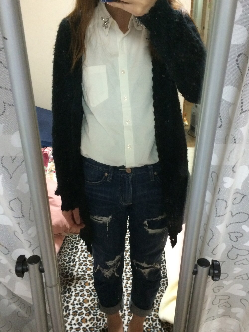 家族でお出かけ❤️ そこまでおしゃれしてないけど、今日は暖かかったのでちょっと薄着でもいけました😁 新しく加えるアイテムはありませんが、お気に入りのダメージデニムとカーディガンは最近よく着てます✌