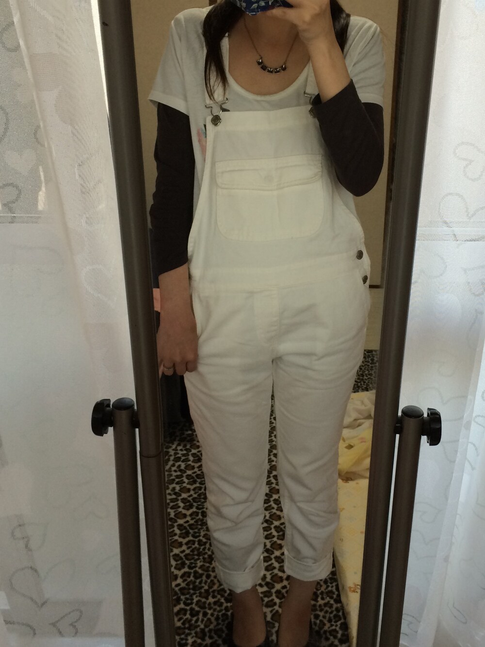 欲しかったサロペットを遂に購入したので、早速着てみました😊 着たのはいいけど、中に着るトップスにかなり悩みました… ボーダーを着ようか、普通に黒のトップスにしようか… 結果的に白白コーデのちょい黒コーデになってしまいました☺️ 今日はかなり暖かくて暑いぐらい! 散歩もこれだけで十分でした😝