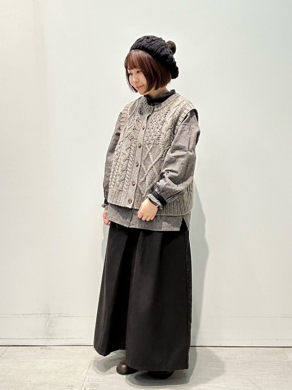 おーほりのハット「ぽんぽん付ニットベレー」を使ったコーディネート