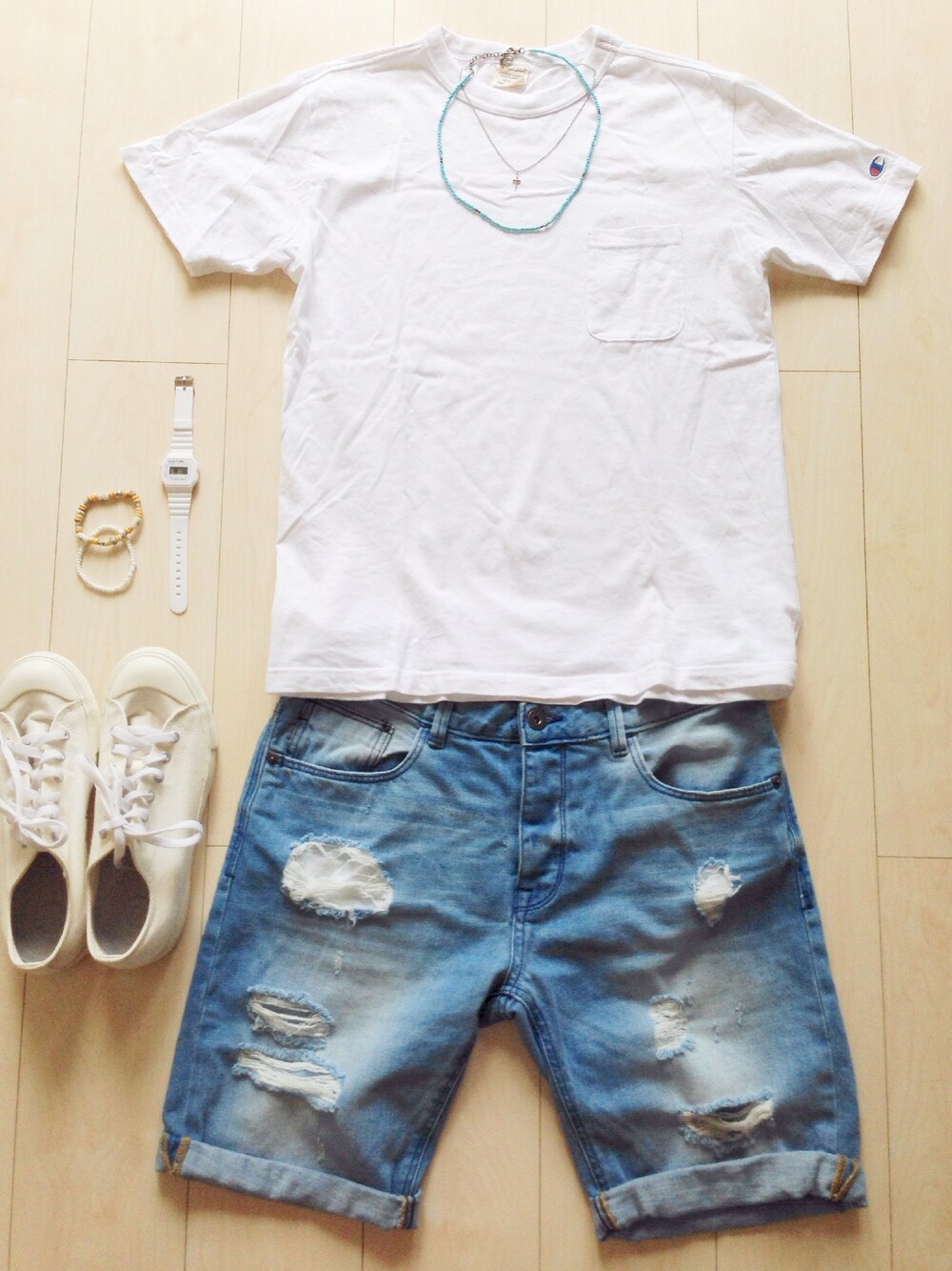 ネックレスを重ねて🌴🍔 このハーフパンツの着こなしもっと増やしたいなぁ…