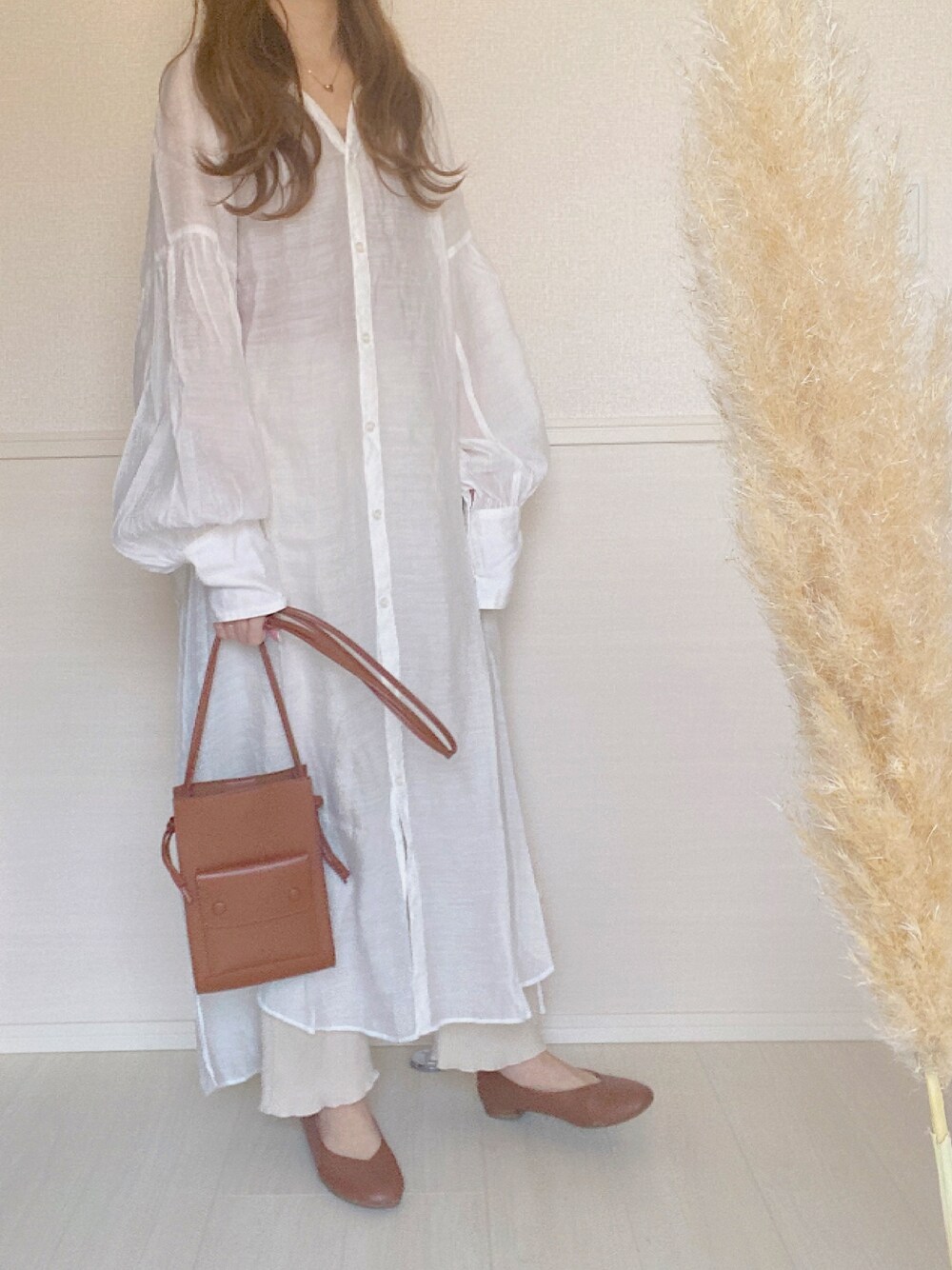 こ ま め * のシャツワンピース「シアーシャツワンピース」を使ったコーディネート