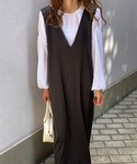 こ ま め * のワンピース「サテン風Vネックワンピース」を使ったコーディネート