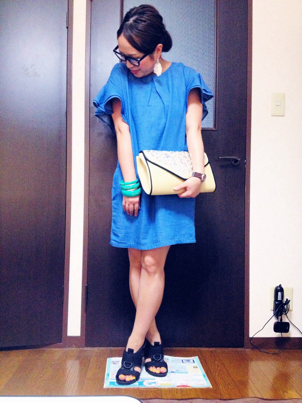 レインブーツと悩みましたが小雨なのでサンダルに。 いったい梅雨はいつ明けるんだろう。。 ワンピース:ROPE PICNIC メガネ:Another Edition サンダル:UNITED NUDE クラッチバッグ:Banner Barrett